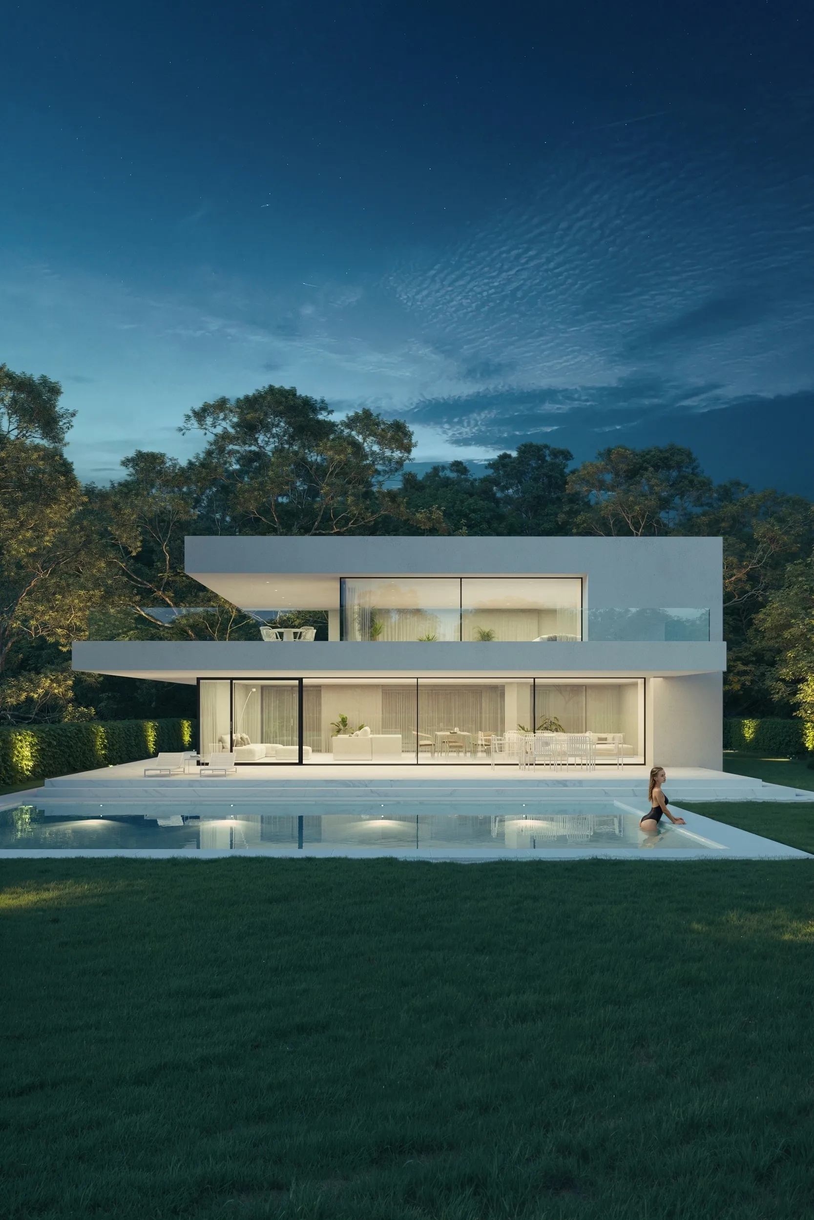 Doğayla uyumlu yatay mimari anlayışıyla tasarlanan proje; keskin hatlara sahip çağdaş tasarım dili, geniş cam yüzeyleri ve ferah yaşam alanlarıyla konforu estetikle buluşturuyor. Her villada yer alan özel bahçe alanları, modern yüzme havuzu ve geniş teraslar; şehir hayatının yoğun temposundan uzak, sakin ve prestijli bir yaşam sunmak üzere planlandı.